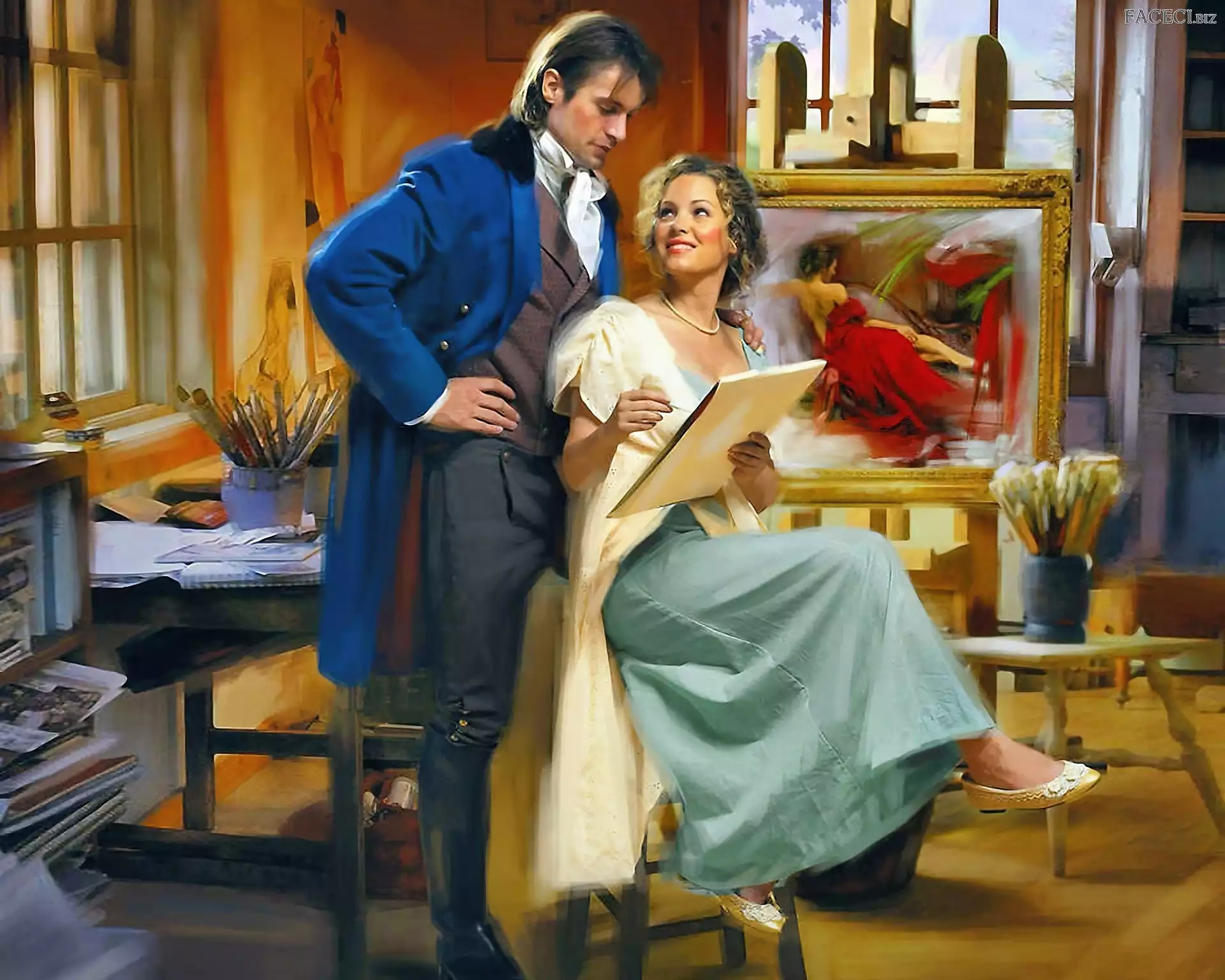 Mężczyzna, Sztalugi, Kobieta, Obraz - faceci.biz